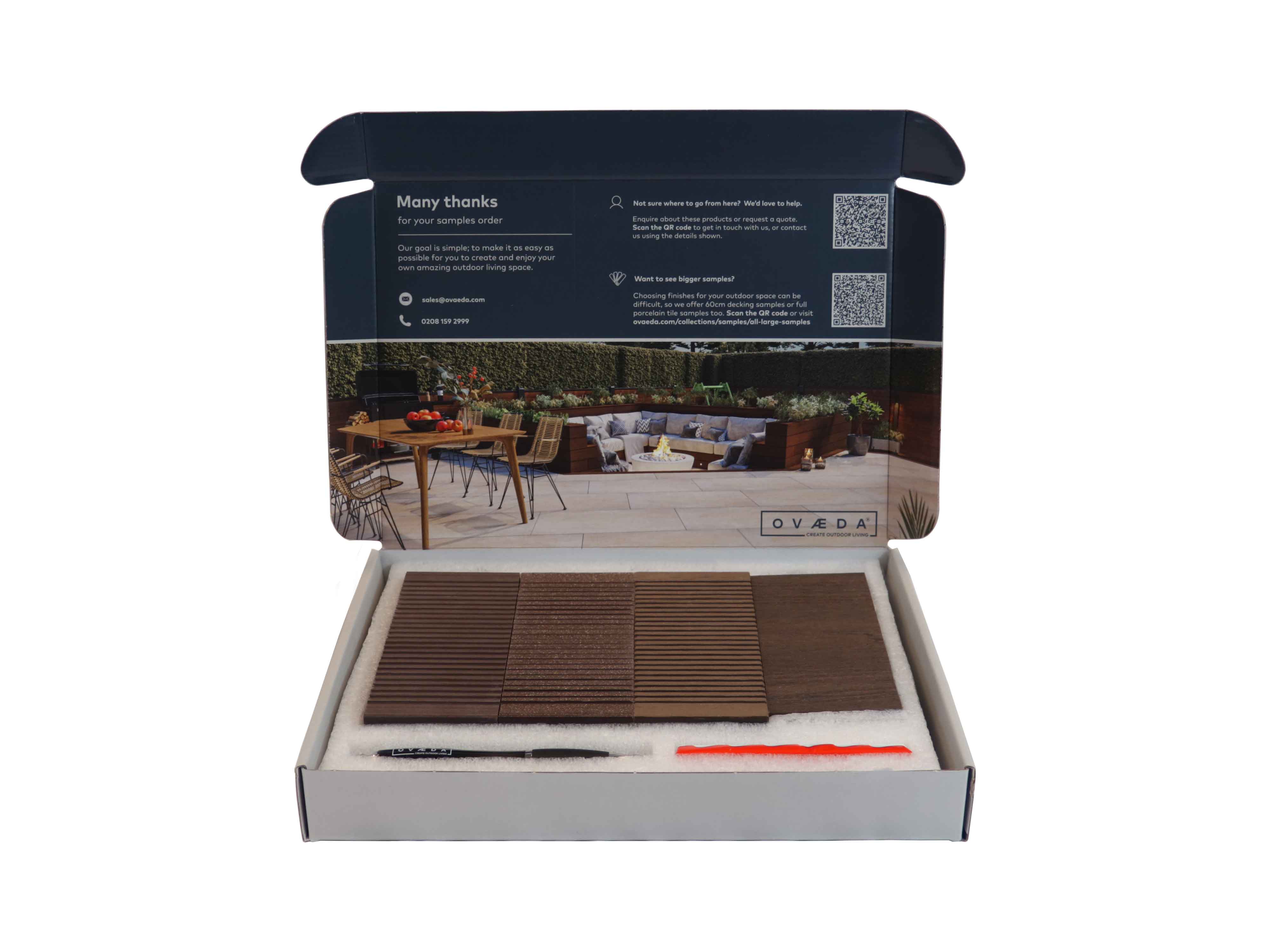 Explore our range of samples of composite decking and porcelain paving to help guide you on your decision making process before placing your order