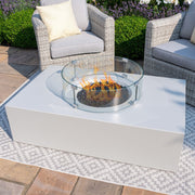 127x77cm Rectangular Fire Pit (includes glass surround, and fire stones) | Pebble White
