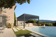 AirPlus™ Freestanding Aluminium Pergola is a graceful modern roofing system with a solid construction. This product is a stunning centrepiece when creating your luxary outdoor living area. AirPlus™ Freestanding bioclimatic pergola can be situated against any suitable wall in your garden. The louvres open and close with a range of rotation from an angle of 0° through to 135°, which allows for sun exposure and air circulation control. Available in 3 colours and many size variants, with the option to add roller blinds on all sides.