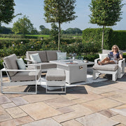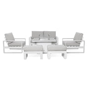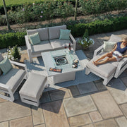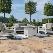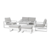 Amalfi 2 Seat Sofa Dining Set with Square Fire Pit Coffee Table (includes x2 footstools) | White