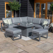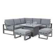 Amalfi Small Corner Dining with Square Fire Pit Coffee Table (includes 2x footstools) | Grey