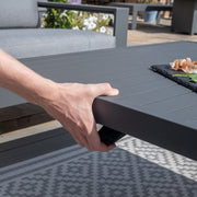 The Amalfi Square Corner Dining Set with Rising Table is typified by the large, deep seating - creating a truly comfortable corner sofa. The gas lift rising table allows you to easily change from dining table height to coffee table height in seconds. The new gas lfit hydraulic system allows you to adjust the table to any height you need - making the set as versatile as it is comfortable.