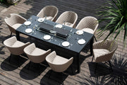 Ambition 8 Seat Rectangular Fire Pit Dining Set | Taupe