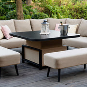 The Ambition Square Corner Dining Set with Rising Table is definitely a must have set this year. Sink back into plump cushions, pour your favourite drink and relax. Then, when ready, raise the square table to its' dining height, and enjoy your meal, in the same relaxed surroundings.