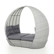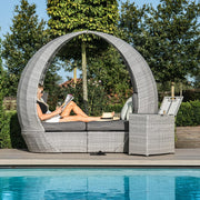 The Maze - Ascot Daybed - With Weatherproof Cushions designed with curves and a lovely sun protecting finish. The daybed has two sections which curve over the daybed to create a shaded cosy feeling while relaxing on the garden daybed. Read a book and relax into the curved comfort with padded back cushions.