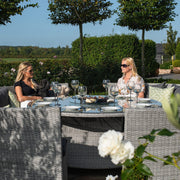 The Maze - Ascot Round Sofa Dining Set - With Rising Table & Weatherproof Cushions is a beautifully round set, designed with 4 curved sofas and a large round table. This sofa set is a great feature for entertaining in your garden, sit round with your friends and family and laugh into the summer sun.
