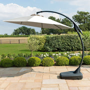 The Banana Parasol pairs perfectly with any of our existing sets, and provides shelter from the summer sun. When the canopy is fully opened, there is plenty of protection from the elements. In addition the Banana Parasol is supported by a sand & water filled base. The entire parasol can be manoeuvred across your patio area due to the wheels which are located underneath the base. Please note the base should comprise of 80% sand and 20% water. The parasol canopy is manufactured from a 230gsm polyester, which is also UV rated.