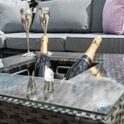 The Barcelona Corner Group with Ice Bucket is the perfect solution for those who need versatile and comfortable seating. Included in this set is a large footstool that can be used as an extra seat, or it can be used to convert a sofa seat into a chaise lounge style bed. Also included is a large coffee table, topped with our toughened glass and finished off with our inset ice bucket, perfect for keeping those drinks cool all afternoon.