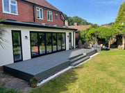 Light Grey | Grooved Composite Decking is a great choice for creating beautiful external spaces to relax and entertain. With a minimalist grooved finish, it blends in perfectly with a modern day outdoor space. Available with matching corner trims to complete the look.