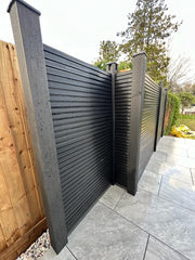 Black aluminium bottom rail to go along the ground which the fencing boards fit into.