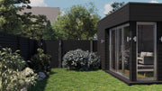 Black panel composite cladding is the darkest board in the range. This material has a 1mm capping of durable HDPE wrapped completely around the board making it UV stable. The core is made up from 55% reclaimed wood fibres and 45% recycled HDPE.
