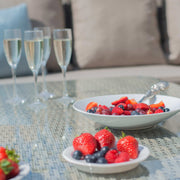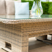 The double ribbed rounded weave is available in Stone, a colour reminiscent of its namesake. The 3 Seat Sofa Dining Set with Rising Table is ideal for those with a smaller area to fill as it effortlessly combines informal lounging, then by raising the table, comfortable dining without having to move.