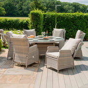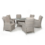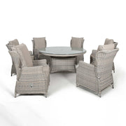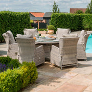 Cotswold Reclining 6 Seat Round Dining Set (with woven Lazy Susan) | Grey/Taupe