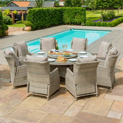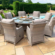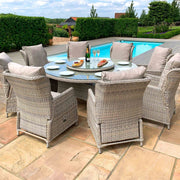 Cotswold Reclining 8 Seat Round Dining Set (with woven Lazy Susan) | Grey/Taupe