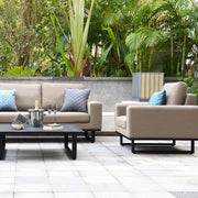 The Ethos 3 Seat Sofa Set offers uniquely sculpted design, with bold lines and thick armrests for supreme comfort. The Ethos range truly unifies your inside and outside space by blurring the lines between your house and garden, whilst still retaining the look of a sofa that belongs outside.