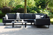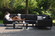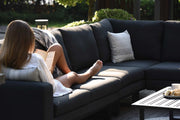 The Ethos Large Corner Sofa Group offers uniquely sculpted design, with bold lines and thick armrests for supreme comfort. Truly unifying your inside and outside space by blurring the lines between your house and garden, whilst still retaining the look of a sofa that belongs outside. This particular