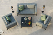 The Eve 2 Seat Sofa Set effortlessly combines style and convenience. The range features bold lines with deep filled cushions combined with elegant framework to complement your outdoor space. The sofa has detachable armrests which transform into side tables, perfect for relaxing with a coffee or hosting a drinks party.