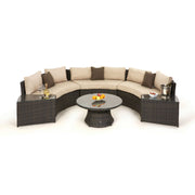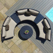 The Half Moon Sofa Set is something quite unique; made up of three curved sofas, along with two trapezoid side tables that slot in perfectly, and one large circular coffee table, so there is always somewhere to put your drinks. The modular design allows you to arrange the tables and sofas in the best way to suit your garden, whilst maintaining the social element. Included with the set are the back and base cushions, but you will also receive scatter cushions that accentuate the beautiful weave colour.