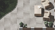 Indio™ | Light Grey Stone Effect Porcelain Paving Tiles (60x120x2cm)