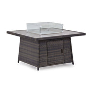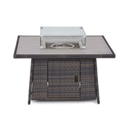 Kingston Corner Deluxe Dining Set with Fire Pit (aluminium slatted top includes glass surround, metal lid, firestones) | Brown | Flat Weave
