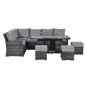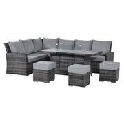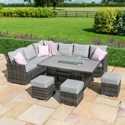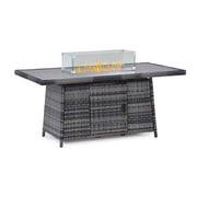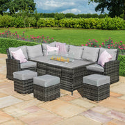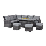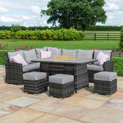 Kingston Corner Dining Set with Fire Pit (aluminium slatted topincludes glass surround, metal lid, firestones) | Grey | Flat Weave