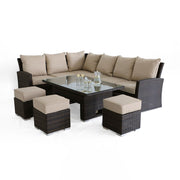 The Kingston Corner Dining Set with Rising Table is the perfect combination of relaxation and comfortable dining, with the versatility to easily swap from an afternoon coffee table to evening dining table in moments.