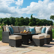 The Left Hand Corner Sofa is a great design to give you the option in your garden spaces, we have always sold the right handed corner which is our most selling set from Maze. The corner sofa offers enough seating for your family and friends and great versatility for your outdoor space. In addition, the rising table will allow you to go from dining to lounging as it transforms from a dining table to coffee table with the easy lift and lock mechanism.