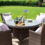 The LA range is typified by its deep chairs and modern appearance, making it a favourite for many. This 4 Seat Round Dining Set is the perfect place to relax with friends and enjoy your garden. The contemporary design, comfortable cushions, and finishing touches make this a great addition to your garden.