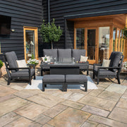 Manhattan Reclining 3 Seat Sofa Set with Fire Pit and Footstools (includes 2x footstools) | Charcoal