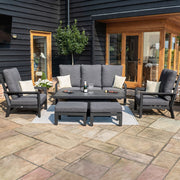 Manhattan Reclining 3 Seat Sofa Set with Rising Table and Footstools | Charcoal