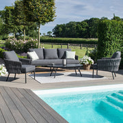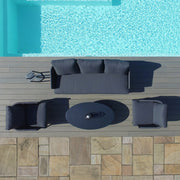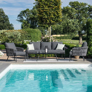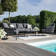 The Marina 3 Seat Sofa Set features a generous 3 seater sofa with a pair of deep set armchairs, all with deep filled cushions for maximum comfort, complemented by a beautiful spray stone coffee table. The sleek rope weave design and subtle angles of the contemporary framework of the Marina range ensures that the set will be a distinguished addition to any outdoor space.