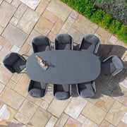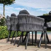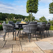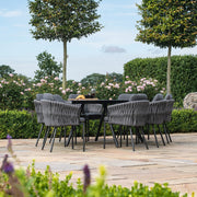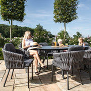 The Marina 8 Seat Oval Dining Set is an elegant way to bring al fresco dining to your outdoor space, whether you're enjoying breakfast, lunch or dinner. The oval table is finished in a beautiful matte spraystone and each chair has plush padded seat and back cushions, ensuring the comfort of you and your guests into the night. The sleek rope weave design and subtle angles of the contemporary framework of the Marina range ensures that the set will be a distinguished addition to any outdoor space.