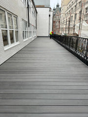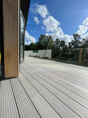 Light Grey | Natura™ Grooved Composite Decking is a great choice for creating beautiful external spaces to relax and entertain. With a minimalist grooved finish, it blends in perfectly with a modern day outdoor space. Available with matching corner trims to complete the look.