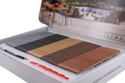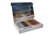 The Natura™ Range | Composite Decking Sample Box contains 1 sample of each Natura™ Terracotta Composite Decking, Natura™ Light BrownComposite Decking, Natura™ Dark Brown Composite Decking, Natura™ Black Composite Decking and Natura™ Light Grey Composite Decking