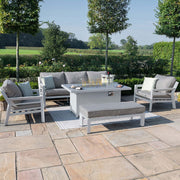 New York 3 Seat Sofa Dining Set with Fire Pit Table (140x90cm table) | White Frame / Oatmeal cushions