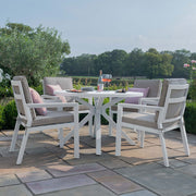 New York 4 Seat Round Dining Set | White Frame / Oatmeal cushions