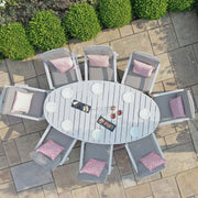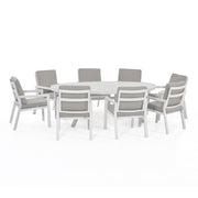 New York 8 Seat Oval Dining Set | White Frame / Oatmeal cushions