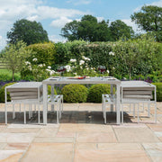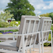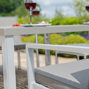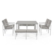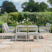 When needing versatility but only have a small area available, look no further than the New York 9 Piece Cube Set. Made from maintenance free aluminium framework, it has a square slatted table, generously sized for 4 chairs and 4 footstools. The footstools can also provide additional seating if required. When not in use, the footstools can tuck under the chairs and then, the chairs can be stored underneath the table, along with all the cushions.