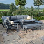 New York Corner Dining Set With Fire Pit Table | Grey