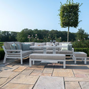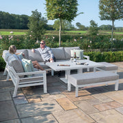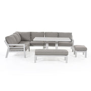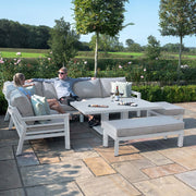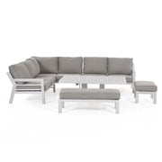 New York Corner Dining Set with Rising Table (150x90cm table) | White Frame / Oatmeal cushions