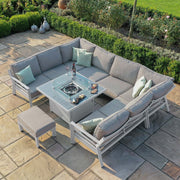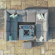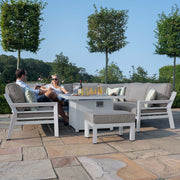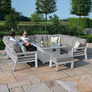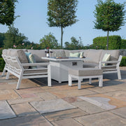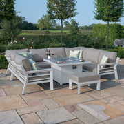 New York U-Shaped Sofa Set with Firepit Table (105 x 105cm table) | White Frame / Oatmeal cushions