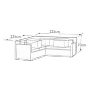 The Winter Cover for our Corner Group is the ideal winter protection for your garden furniture. Manufactured from our premium breathable fabric, we can guarantee our covers will provide superior protection from the elements. All of our furniture covers are packed with cord strings. To secure your cover simply thread the cord strings through the eyelets and loop back round the feet of your furniture. Please note all furniture cushions should not be stored underneath any of our covers. We recommend you keep your cushions stored in a dry location.