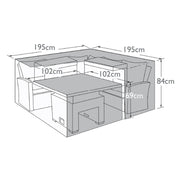 The Winter Cover for our Square Corner Dining Sets is the ideal winter protection for your garden furniture. Manufactured from our premium breathable fabric, we can guarantee our covers will provide superior protection from the elements. All of our furniture covers are packed with cord strings. To secure your cover simply thread the cord strings through the eyelets and loop back round the feet of your furniture. Please note all furniture cushions should not be stored underneath any of our covers. We recommend you keep your cushions stored in a dry location.