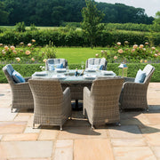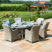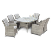 Oxford 6 Seat Oval Ice Bucket Dining Set with Venice Chairs and Lazy Susan | Light Grey
