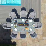The Oxford 8 Seat Oval Fire Pit Dining Set with Heritage Chairs brings a touch of luxury to your al fresco dining. The oval table topped with toughened glass teamed with the eight comfortable chairs complete with base and back cushions to make this the perfect set to share breakfast, lunch, or dinner! In addition this table has been integrated with a gas Fire Pit system which will allow you enjoy your garden furniture to the late hours in the evening and comes with a metal inlay which covers the Fire Pit when not in use. All of our Fire Pit systems are CE registered and have a BTU of 50,000 (British Thermal Unit is a unit that measures the heat generated by the burner). On average, depending on the setting used, our Fire Pits will produce approximately 6-7 hours use for a 7KG gas bottle. We recommend using a propane gas bottle, which can be stored underneath the table. Please note the ice bucket feature is not included with this product.