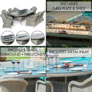 Oxford 8 Seat Oval Fire Pit Dining Set with Heritage Chairs | Light Grey