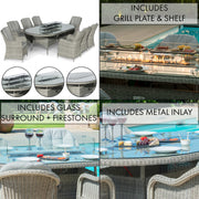 Oxford 8 Seat Oval Fire Pit Dining Set with Venice Chairs | Light Grey