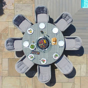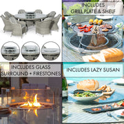 Oxford 8 Seat Round Fire Pit Dining Set with Heritage Chairs and Lazy Susan | Light Grey