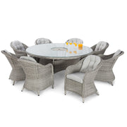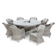 Oxford 8 Seat Round Ice Bucket Dining Set with Heritage Chairs and Lazy Susan | Light Grey