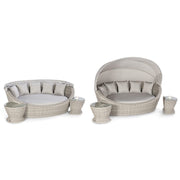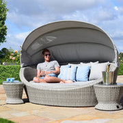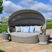 The Oxford daybed is ideal for lounging on a hot summer's day with the hood down catching some rays or with the hood up to keep you in the shade. It has two matching side tables perfect for drinks and snacks.